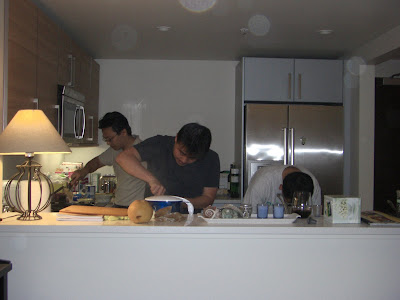 They way it should be, men in the kitchen while the ladies were enjoying a glass of wine…