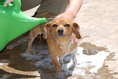 After lunch, I headed over to my parents house to hang out for a while and my dad just happened to decide to give their dog Happy a bath.