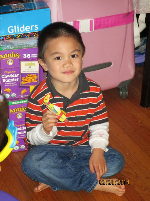 Simon got to play with one of the party favors for his guests, a glider.