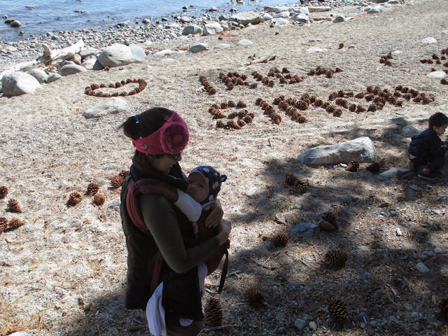 Simon and Ron had fun with the pine cones on the beach. Ron spelled out the kids’ names and Simon made a heart.