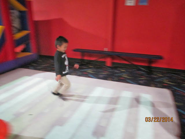 Simon’s classmate invited him to a birthday party at Pump It Up. Basically an indoor facility with inflatable jumpers and slides. The kids used a lot of energy bouncing in the houses, sliding down the slides, running through obstacle courses, playing on the lifesize piano, and lots of screaming fun.