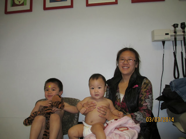 So both kids had good checkups today. Iris had a fun time playing with the paper covering the examination table. Simon didn’t cry this time until after his first shot. He got two shots today and immediately starting crying after his first shot but still took the second one without too much fuss. He didn’t cry for very long though so I’m very proud of him. Last year he wouldn’t even let the doctor examine him nor let the nurse take his height and weight. He breezed through the measurements and even passed his vision and hearing test with flying colors.