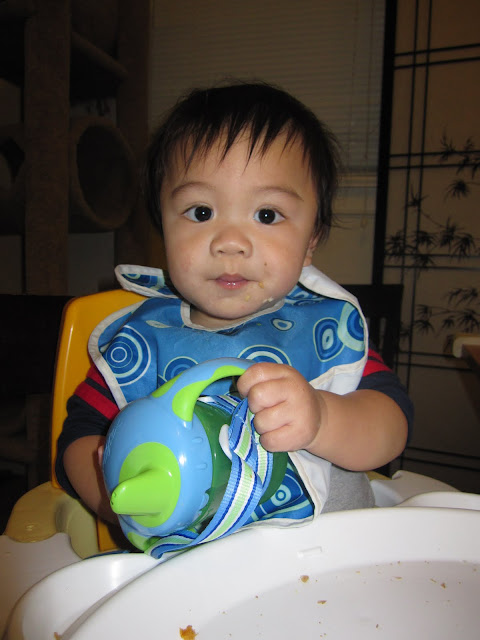 His dexterity is also improving. Now he seems to have no problem taking snacks out of his snack cup.